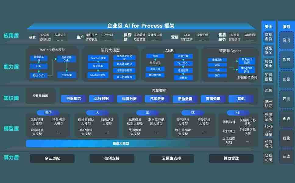 端到端的一站式AI工作空间深度融合了从企业战略规划到日常经营的全流程业务板块,,定向解决车企内部领域多、、部门多、、、、链条长、、、场景碎片化等难题,,支持车企快速构建以AI为核心的生产力写作体系,,,,实现任务执行与AI能力的无缝集成与交互